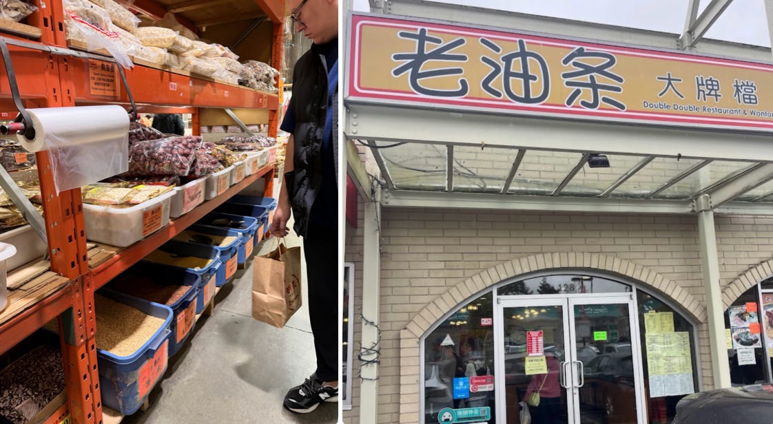 我们还绕去了一家很少会去的干货店,各种食材都很新鲜、很有意思。赵瑞还跟我说他们山西的小米最好吃,可以跟南瓜一起煮。我一下想到妈妈经常煮小米粥,就觉得以后可以尝试新的做法。
