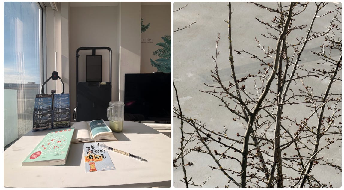 今天醒来的时候阳光明媚,坐在沙发上,光打在身上,心里只剩下一种感受——好感恩,又醒过来了。可以再一次做出选择,再一次做出一些尝试。 午后的阳光正好,感恩这一切。