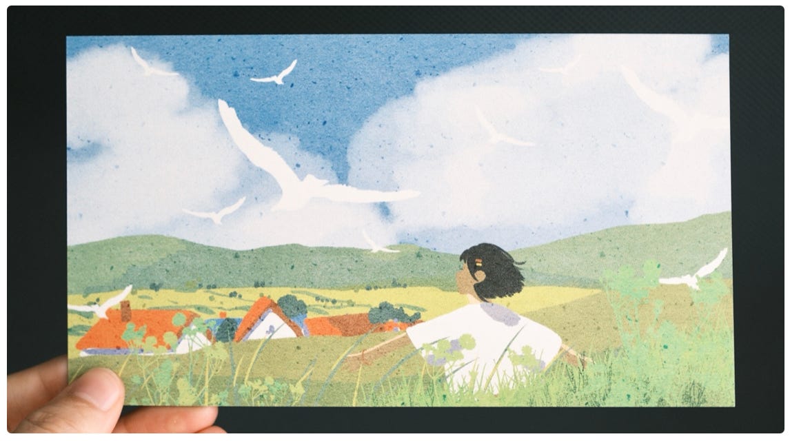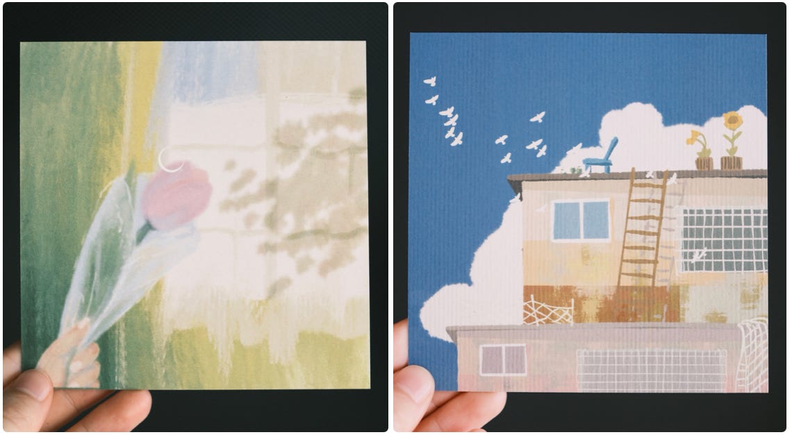 这给了我很多启发。我在想,如果没有那么多金钱可以给予,那给予爱,也是一种很棒的方式。所以这周依旧像之前一样,寄出了很多卡片,每一份都带着我的心意。我想脚踏实地的去爱具体的人❤️。